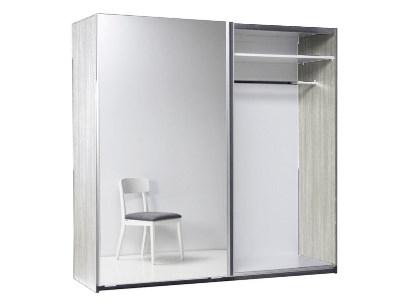 Våra garderober till rätt pris med skjutdörrar finns i flera olika storlekar tex 120, 150 eller 180 cm bred, Färger som vit eller grå. Finsktillverkade.