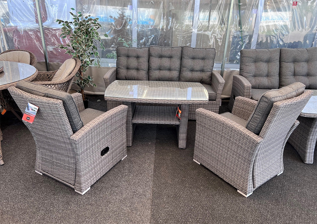 Oavsett om du drömmer om en mysig hörna för två eller en rymlig loungegrupp för familjen, finns det ett brett utbud av möbler att välja mellan. Från rustika träbänkar som smälter in i trädgårdens grönska till moderna loungesoffor som skapar en avslappnad atmosfär – valet är ditt!