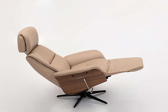 Träinläggen på sidorna av vår lyxiga recliner fåtölj Clark ger en sofistikerad och tidlös estetik. Välj ditt favoritträslag för att skapa en personlig touch och en enhetlig inredning som lyfter hela rummet.
