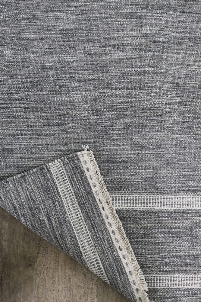 Grinda ljusgrå är en handvävd ullmatta i tidlös design. Mattan är vävd i ett ljusgrått ullgarn med vita ränder vid varje kortsida. Kortsidan avslutas med en dekorativ, detaljerad vävd kant och en kort fransrad. De fint arbetade detaljerna ger en känsla av kvalitet och design som håller över tid. Den enkla och avskalade formen gör Grinda till en matta som harmonierar fint till många olika interiörer och stilar. En slät ullmatta som Grinda är lätt att sköta och passar därför bra att placera även i kök eller matsal. Tjockleken är ca 0,5 cm.